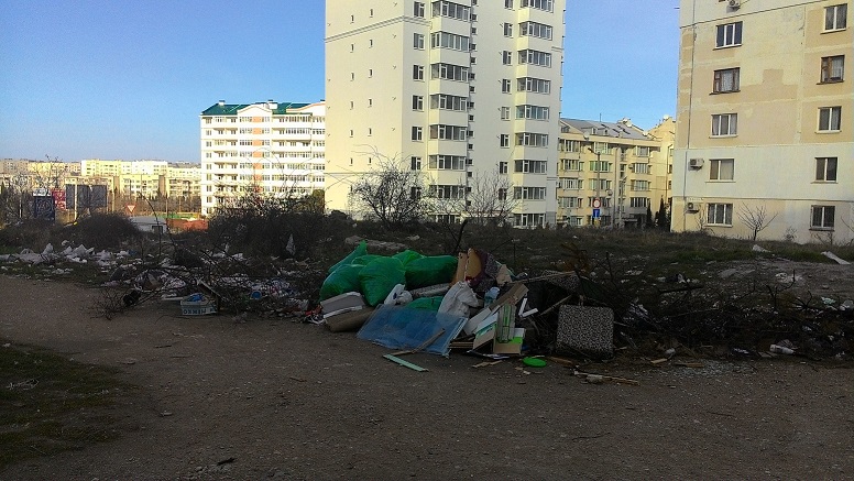 Несколько недель назад на этом месте снимали сюжет севастопольское телевидение про эту кучу мусора,спустя 2 недели ничего не изменилось…гора мусора продолжает расти на глазах…