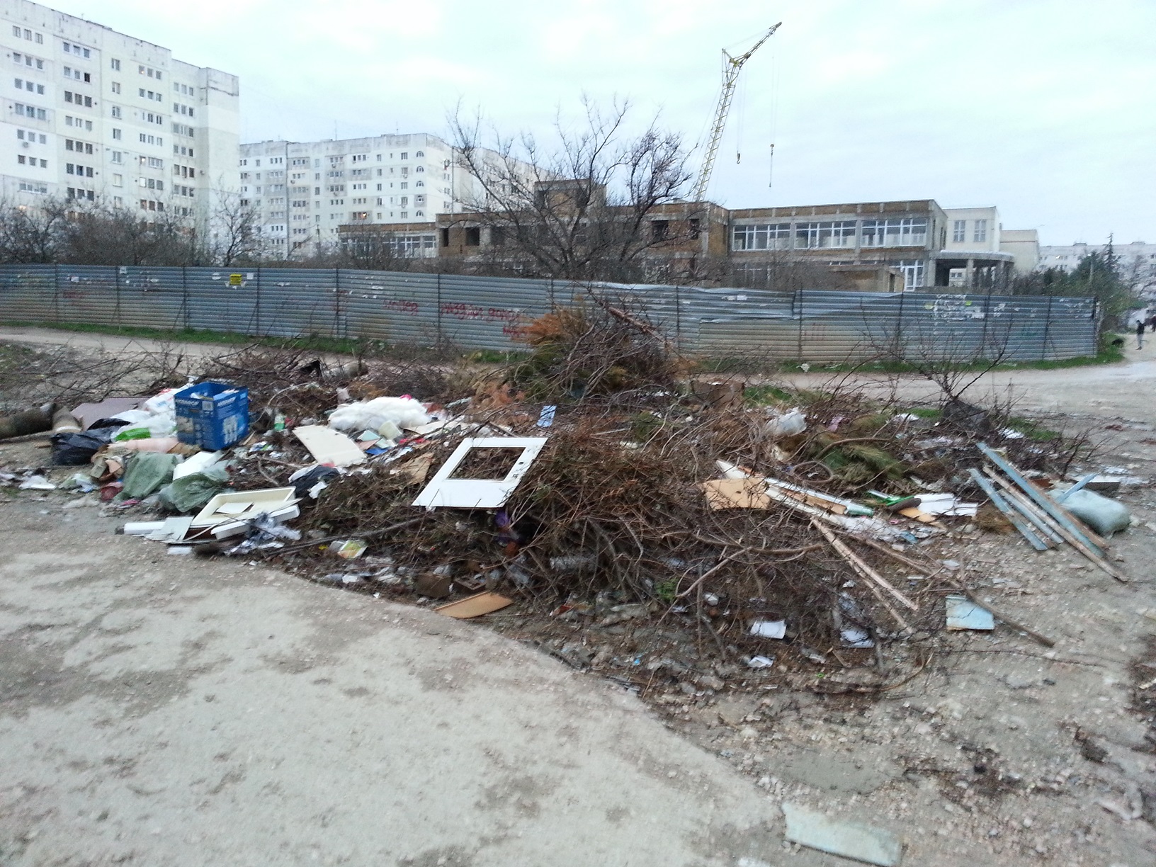 Жильцы окрестных домов, дворники и мимо проходящие люди скидывают строительный мусор, мебель, игрушки, ветки со всех деревьев ближайших дворов. Дети прибегают бьют стекла и режут руки и ноги. Как только мусор раз в 3-4 месяца увозят (и то крупный) люди заново накидывают его, старые бабушки выносят пищевые отходы скидывают на свалку, вместо того чтобы выкидывать в мусоропровод. Как только я открываю окно, чувствую запахи свалки и мне открывается прекрасный вид мусора.