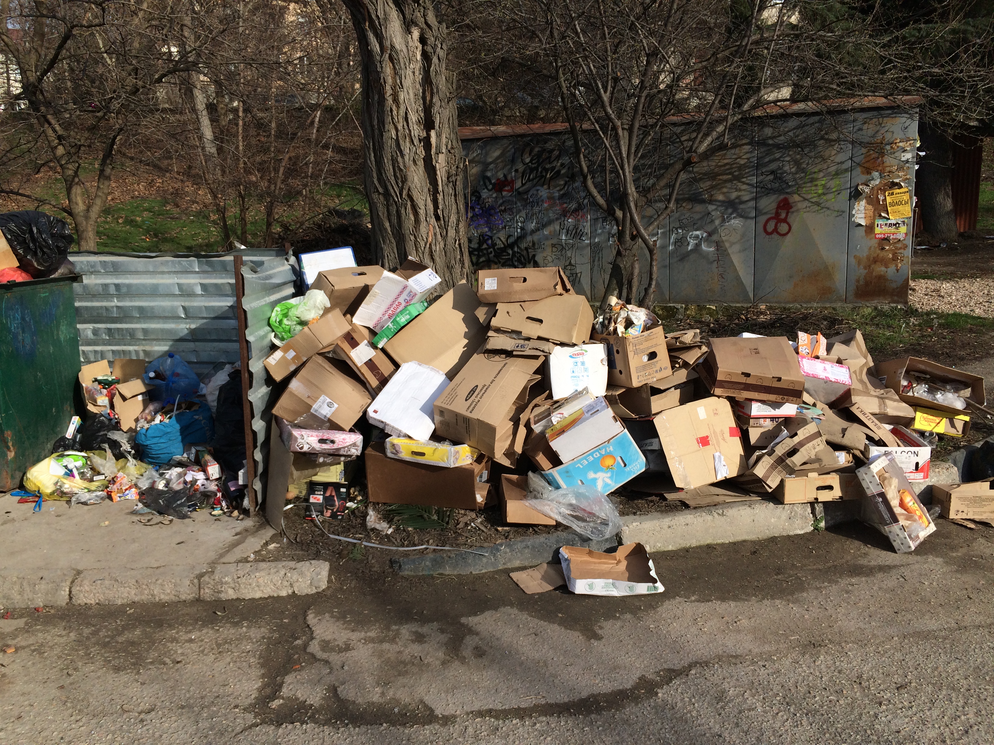 Проблема в том что рядом находится контейнерная площадка не имеющая укрытия от ветра и от животных, которые разносят мусор по всему району.