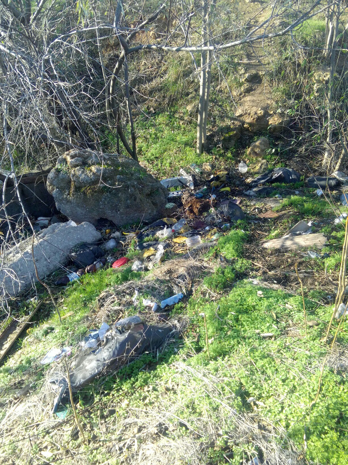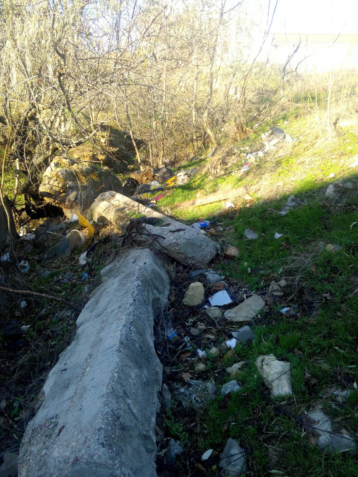 Свалка под забором госпиталя рядом с недостроенным зданием. Уже начинает скапливаться строительный мусор от строящихся рядом коттеджей