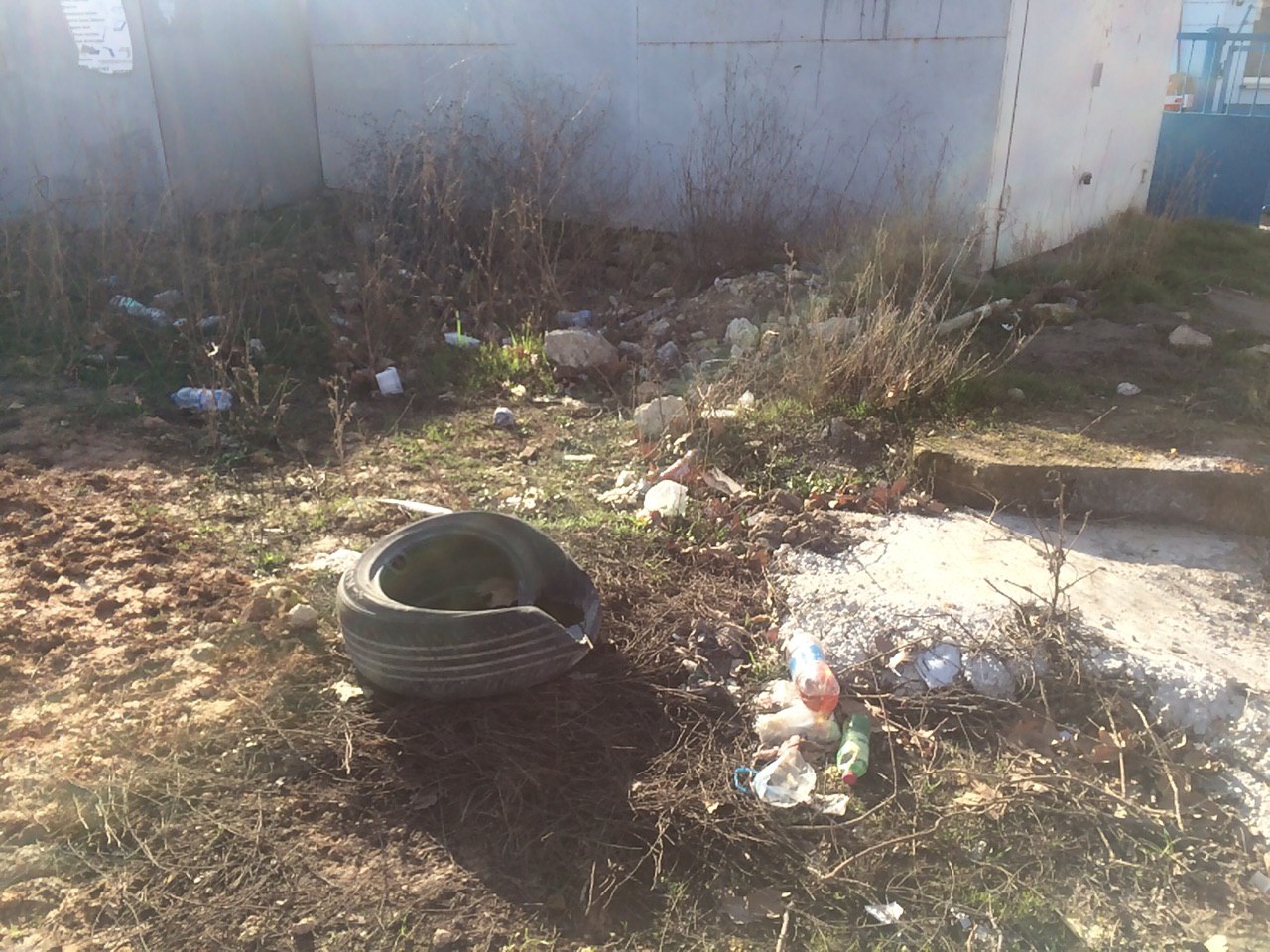 Свалка бытового и строительного мусора около ГСК “Центр 2″ на г.Бреста 1В