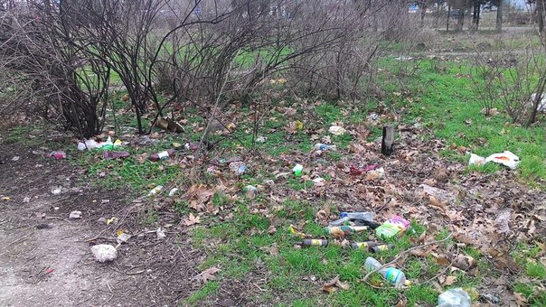 Возле школы небольшой сквер, в котором постоянно жарят шашлыки и оставляют горы мусора. Сквер превратился в огромное мусорное поле.